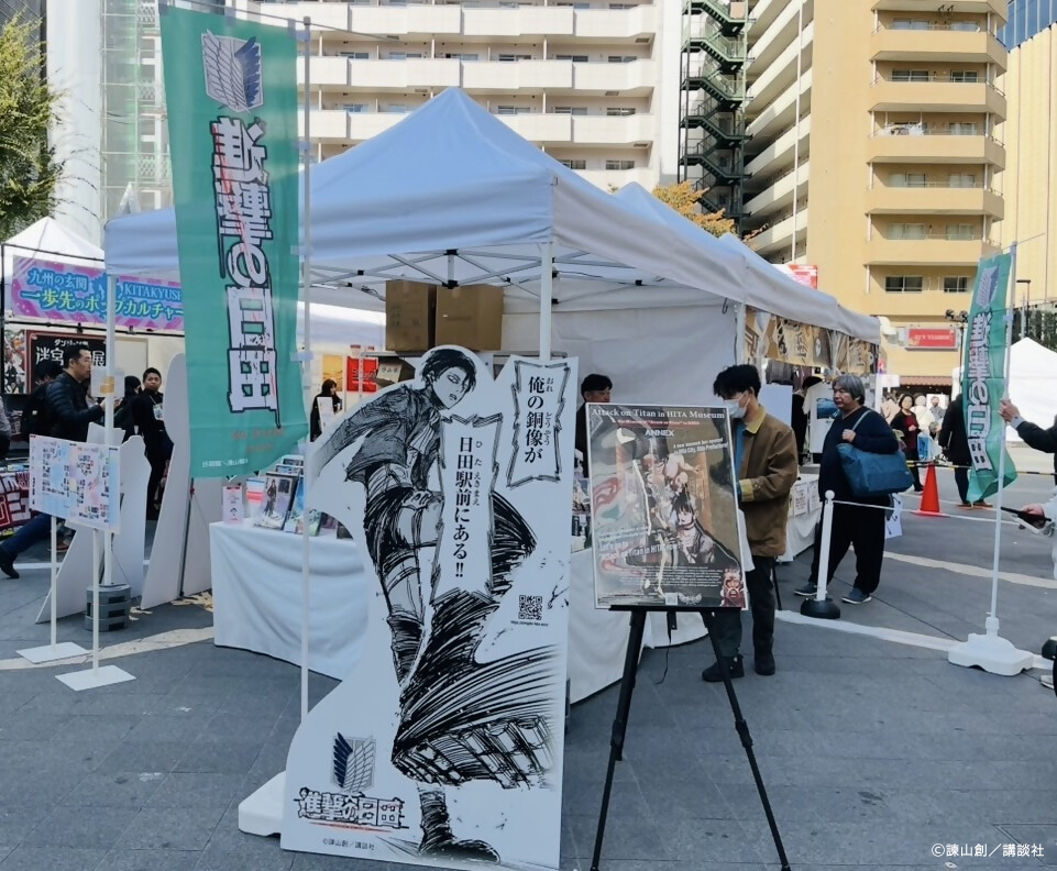 当日は、「進撃の日田」コラボ商品の販売や『進撃の巨人』原作キャラクターパネルの展示をお楽しみいただけます。