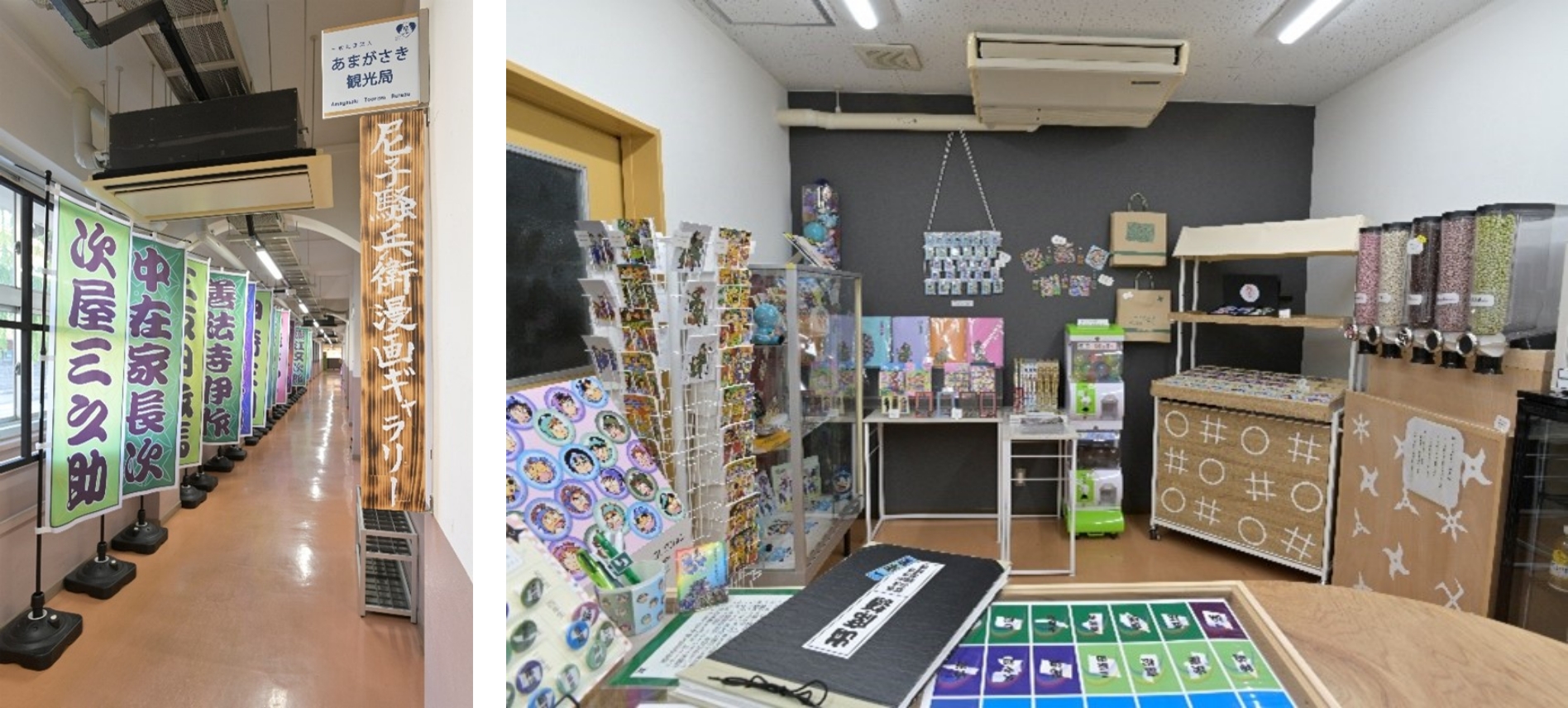 尼崎生まれ、尼崎在住の漫画家・尼子騒兵衛さんの作品「落第忍者乱太郎」の原画を中心に紹介するギャラリー。元小学校の建物を活かして、“忍術学園”をイメージした展示スペースのほか、購買部(物販コーナー)ではオリジナル商品を販売しており、ファンが交流するためのスペースもある。